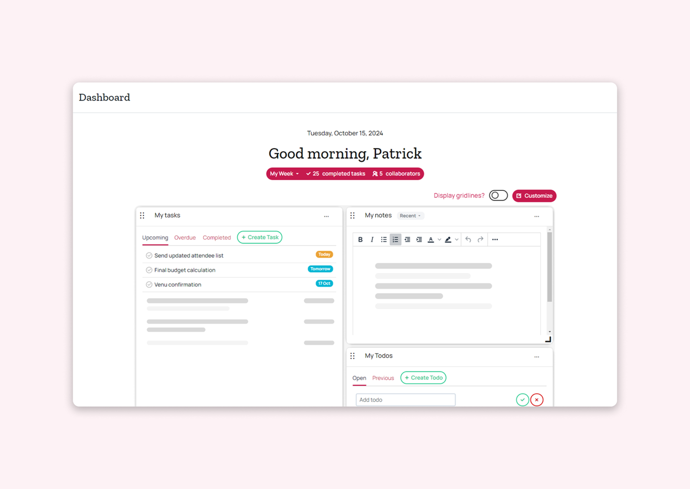 Portabl's smart dashboard will summarise all workstreams, upcoming tasks, and reminders all in one place