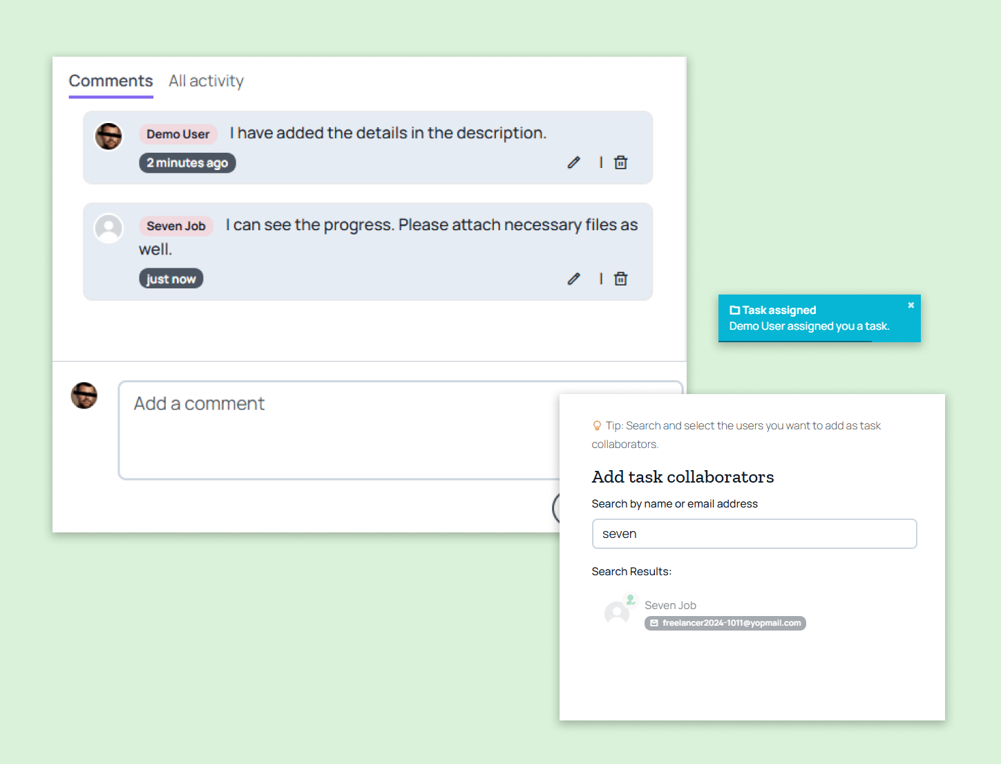 Collaborate effortlessly with your team in portabl. Assign tasks, add comments, add custom tags, define deadlines and track progress.